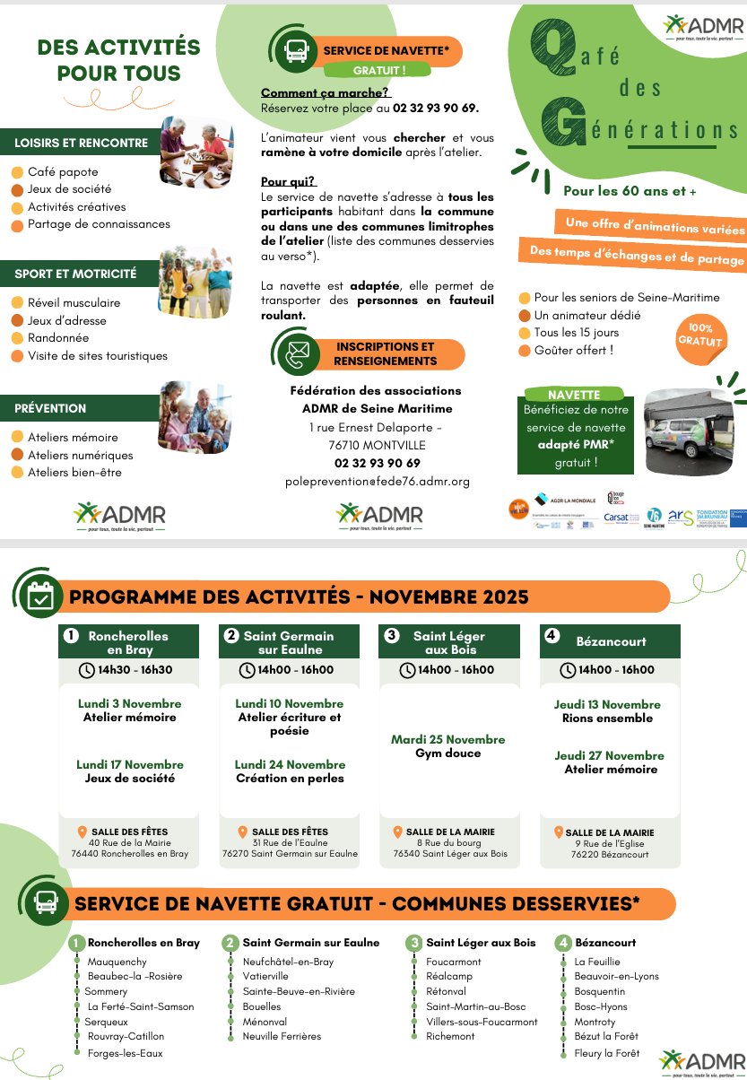 CALENDRIER DES ACTIVITÉS DE "QAFE DES GÉNÉRATIONS" DE L'ADMR 76