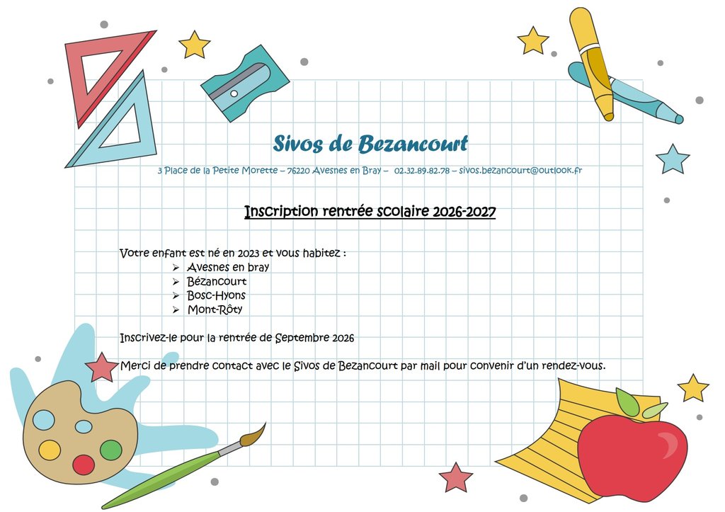 Merci de prendre, rendez-vous avec le SIVOS de Bezancourt pour les