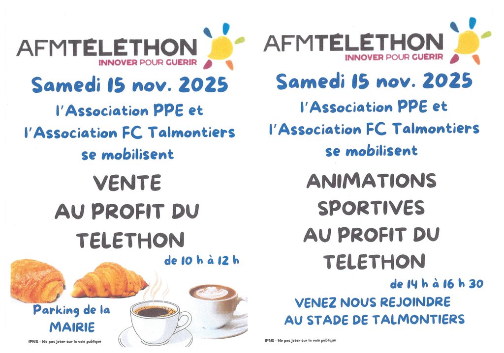 MOBILISATION POUR LE TELETHON LE 15 NOVEMBRE 2025 A TALMONTIERS